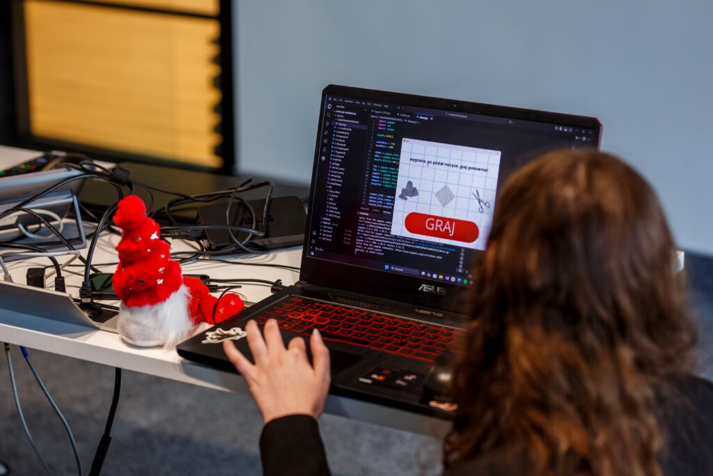 Za merytoryczną stronę kursu odpowiadał Kamil Pawlak, nasz instruktor programowania w języku Python. To on zaprojektował program i poprowadził zajęcia, dzieląc się swoją wiedzą i wspierając dziewczyny na każdym etapie tworzenia kodu. Podczas uroczystego finału uczestniczki zaprezentowały nie tylko wspólny projekt, ale również własne, autorskie prace, co było niezwykle wzruszającym podsumowaniem ich trzymiesięcznej drogi.